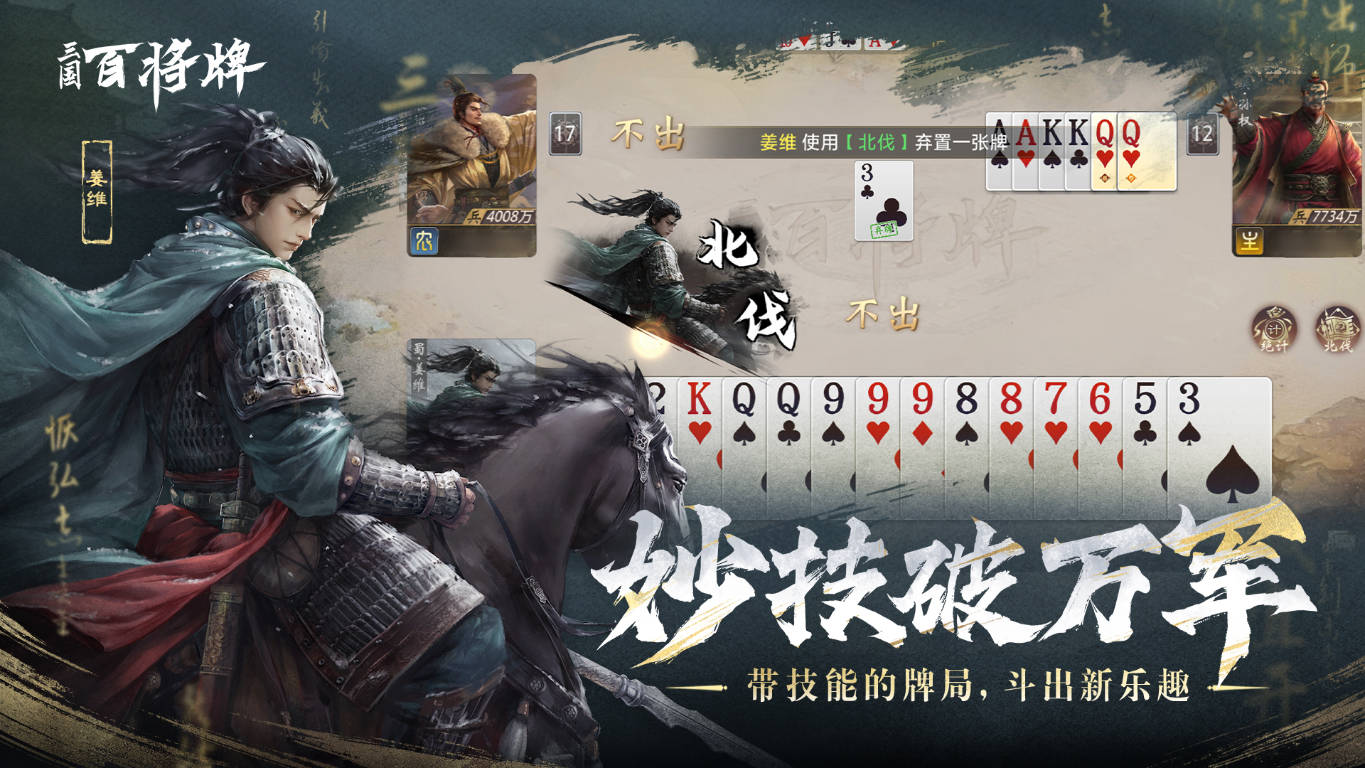 不到最后,不说赢家。名将技能可以改变手牌,再加上名马技能加持,每一局对战都充满未知与惊喜:你可以前期“囤牌”,给自己创造更多选择;也可以骗出敌方关键手牌,再用技能变牌一套带走;甚至能利用技能直接“弃置”队友手牌获得胜利;还有决胜关键冲击高分的“亮剑”玩法,让对手措手不及。看似不可逆转的牌局在这里充满无限可能。