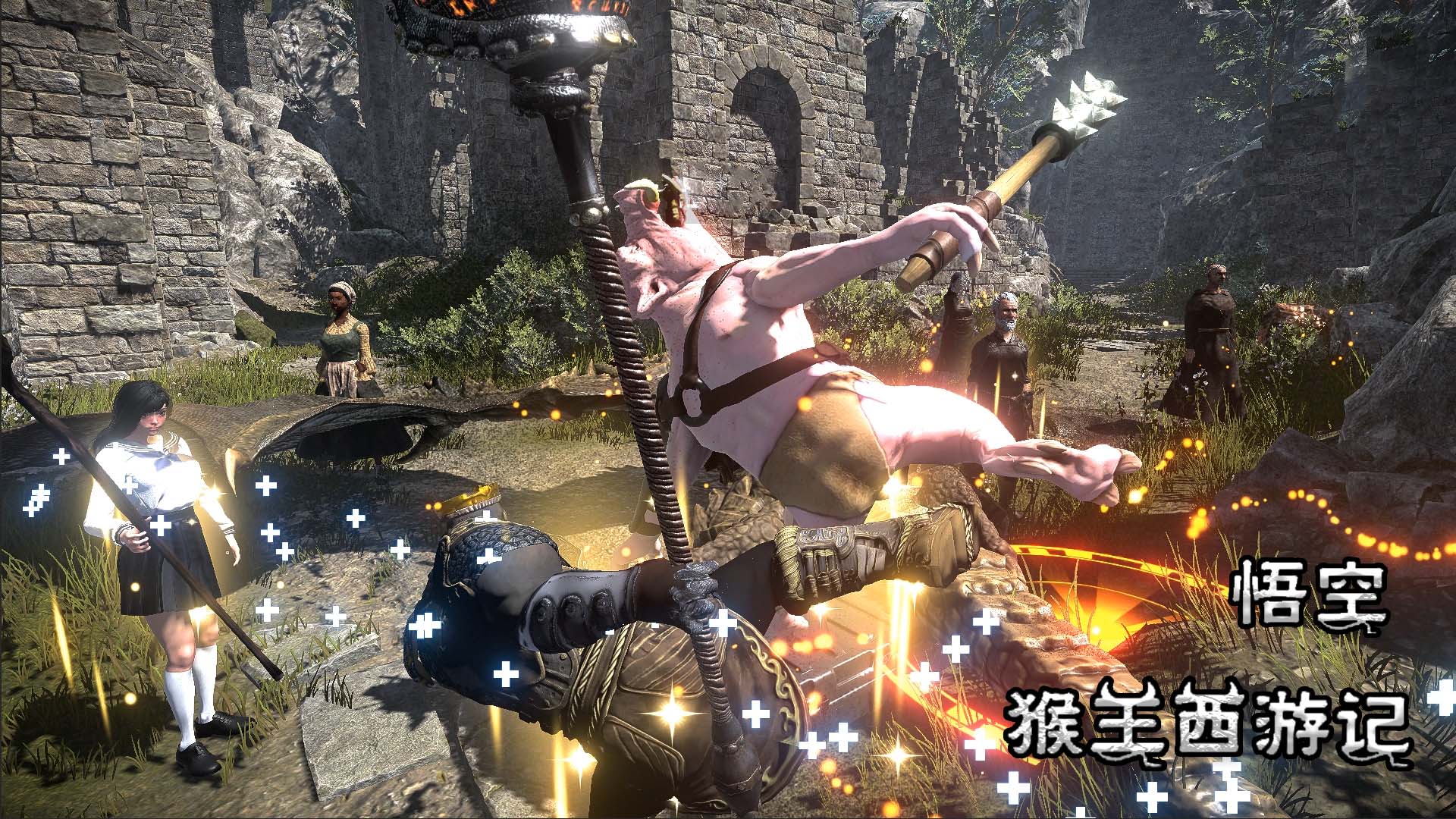 玩法类似怪物狩猎猎人,游戏默认初始4人,分别为,黑悟空、唐三娘、猪七戒、鲨僧,玩家只能操作黑悟空。玩家不同城镇会有不同的村民(这部分还为完成),可以承接到不同的除妖任务,任务大多数都在迷宫内完成(也未完成),玩家需要在限定时间内找出迷宫内的妖怪,并且降伏,妖怪会在残血逃跑(其实这部分也未完成)。咳咳....说了这么多未完成的,我说说哪些是完成的,流程类似就是比较简单,打完小妖怪,可以在右上角主动选择挑战boss,打败boss后到下一关.....