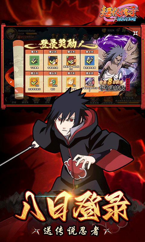 转游300元:小判金*1000000, 忍者经验*100000, 高级招募券*200, 查克拉能量水晶*50, 忍