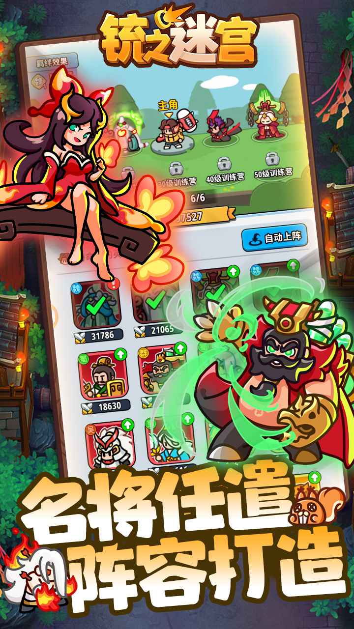 多样武将系统:4大阵容,魏蜀吴群,多种风格定位的武将,独特技能树,获得收集和培养的快乐