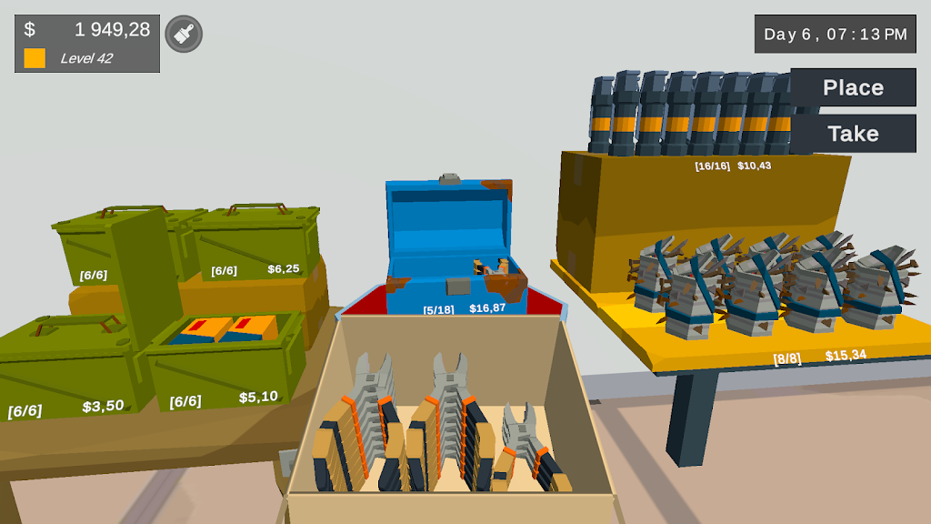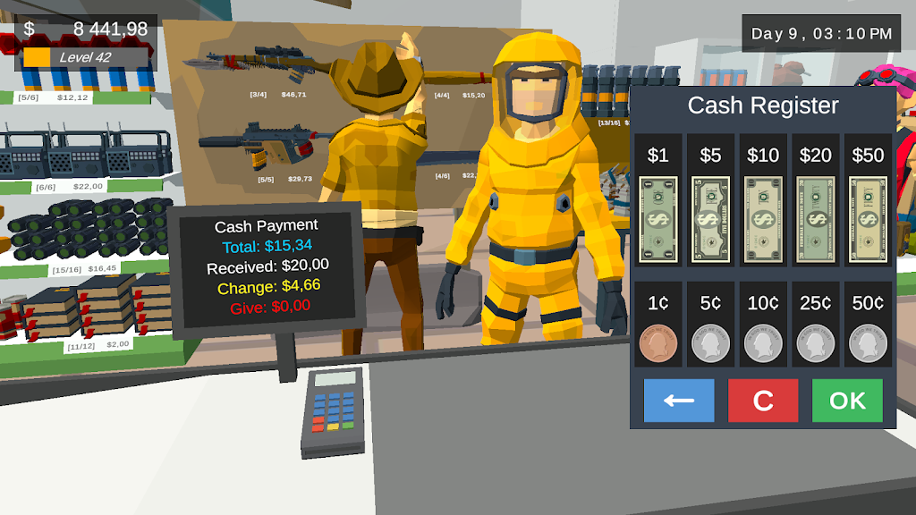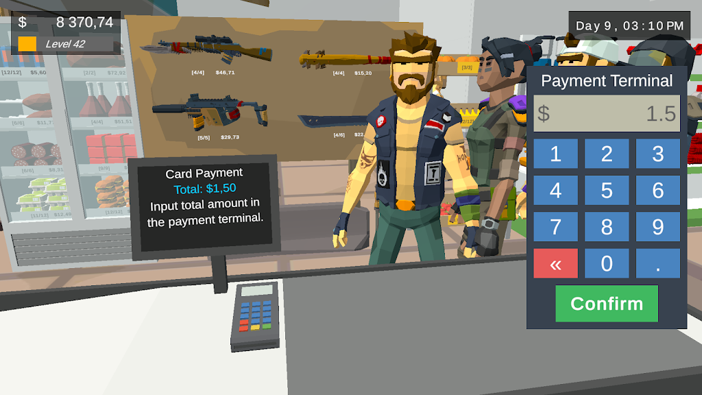 成为武器商人: 在超市内经营你专属的武器店。出售枪支、弹药、战术装备和近战武器。
