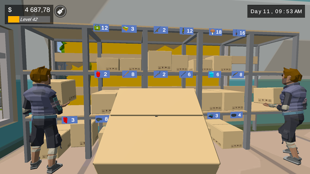 扩张领地: 从一个满是灰尘的小房间开始,购买新空间,将你的商店扩展成一个巨大的超级中心。