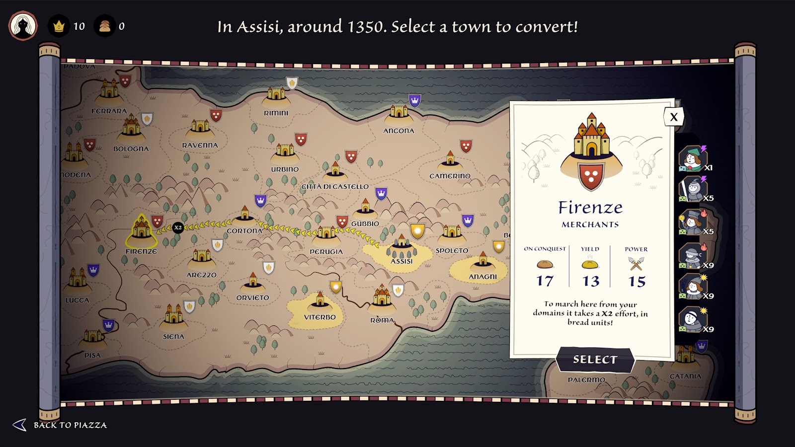 指挥你的追随者参与小规模战斗,选择最具战略意义的单位来转化每个地点。