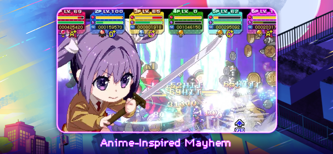 动漫风格的混乱:在精美的 2.5D 像素动画环境中砍杀、释放爆炸性连击。