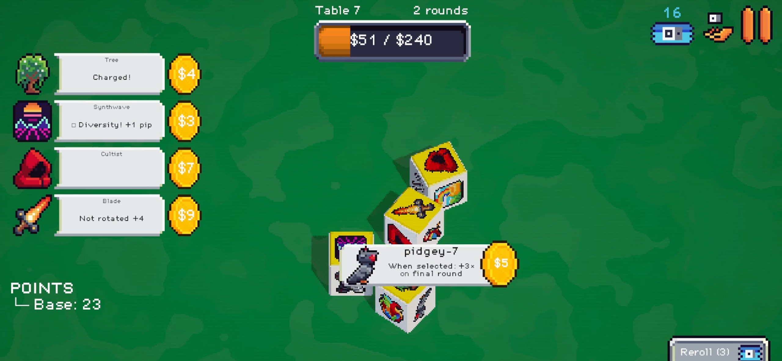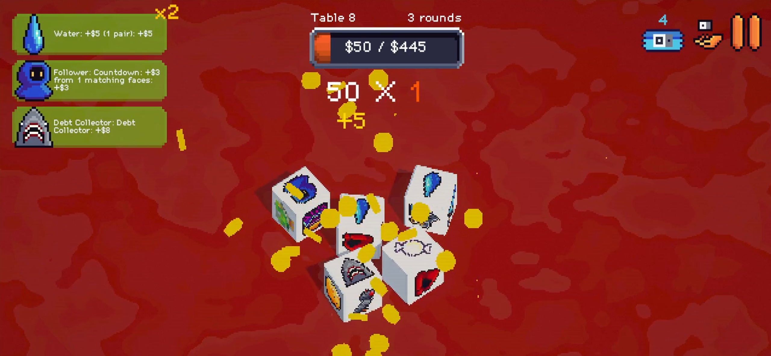 没有永久升级,没有安全网。每一局都从零开始——空白的骰子,
