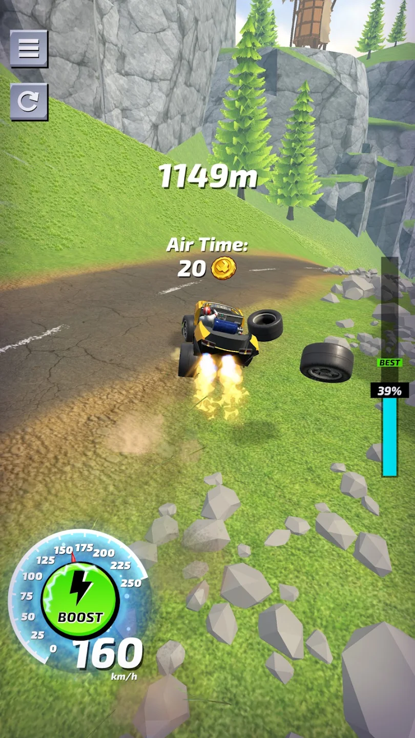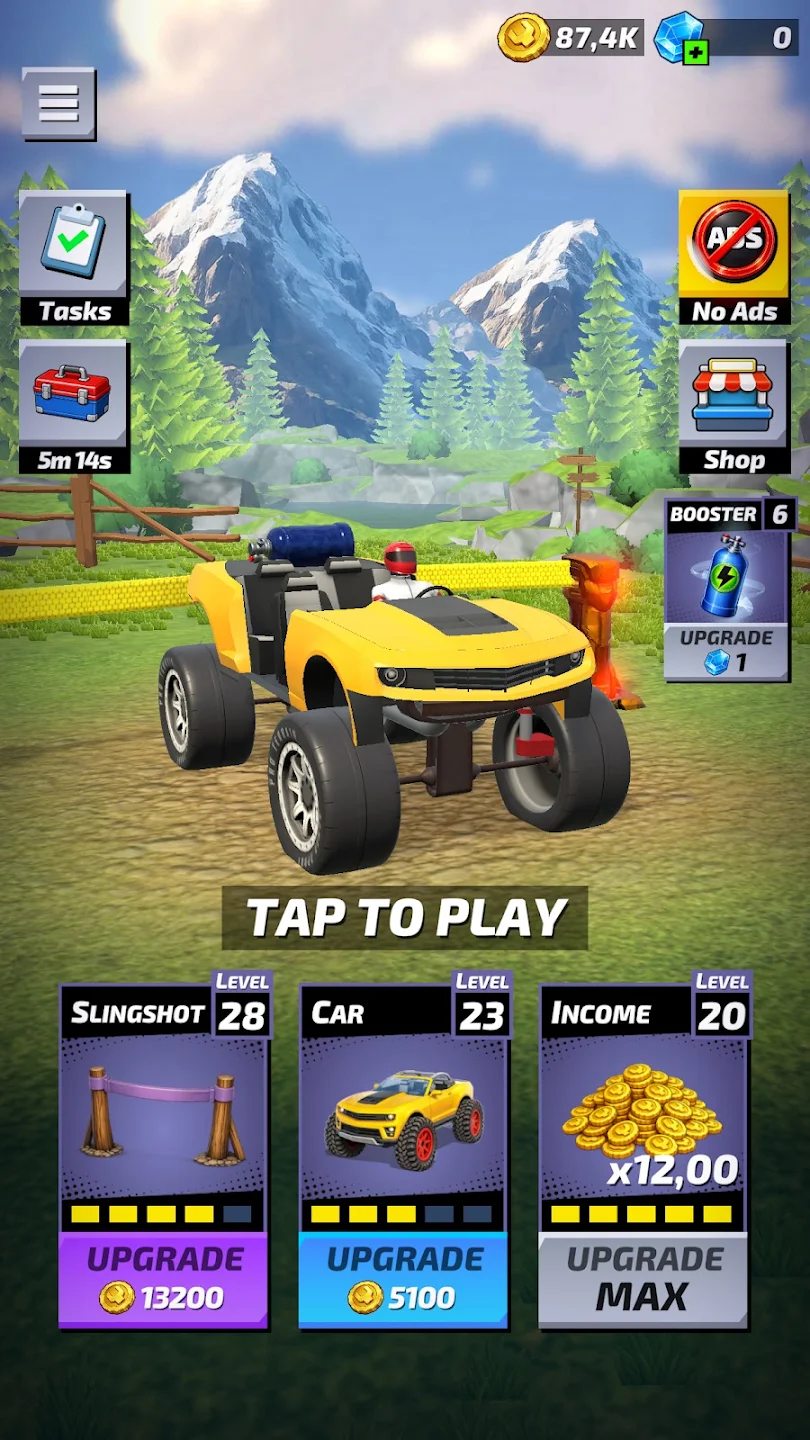 在《助推骑士》这款爆炸性的休闲游戏中,组装你的赛车,然后用巨型弹弓发射出去!