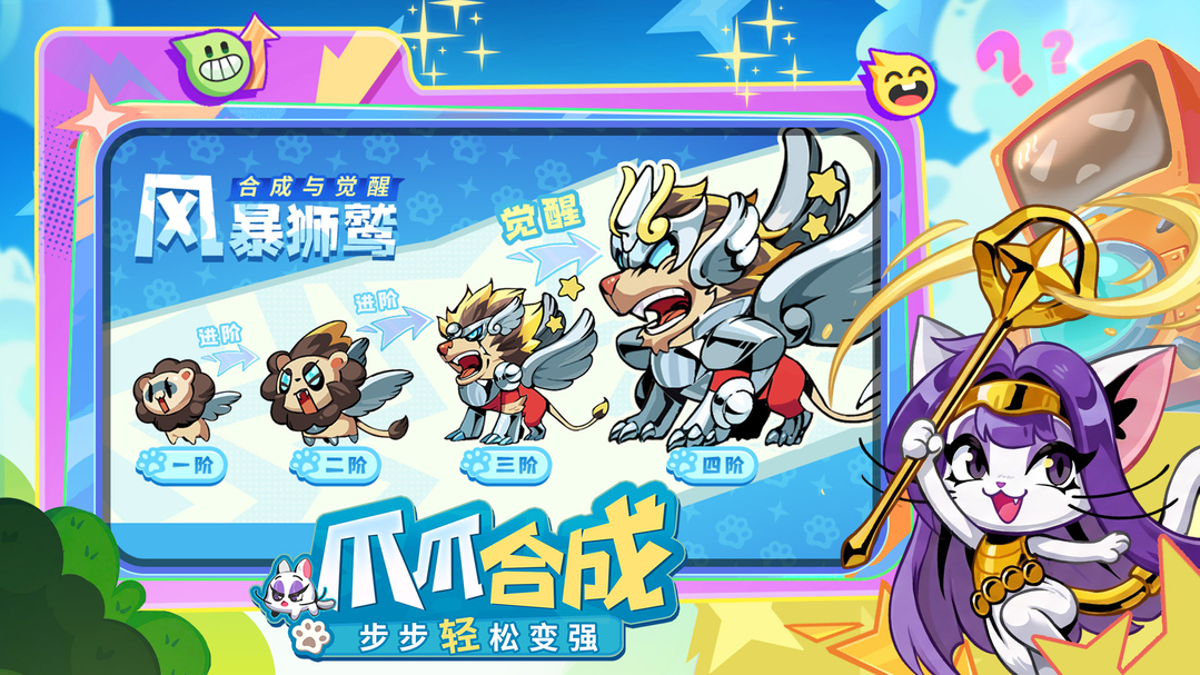 1、提供数十种可收集的爪爪角色,如火焰猫、冰霜兔、电击鼠等,每种具备专属攻击方式与元素属性,支持自由组合搭配。