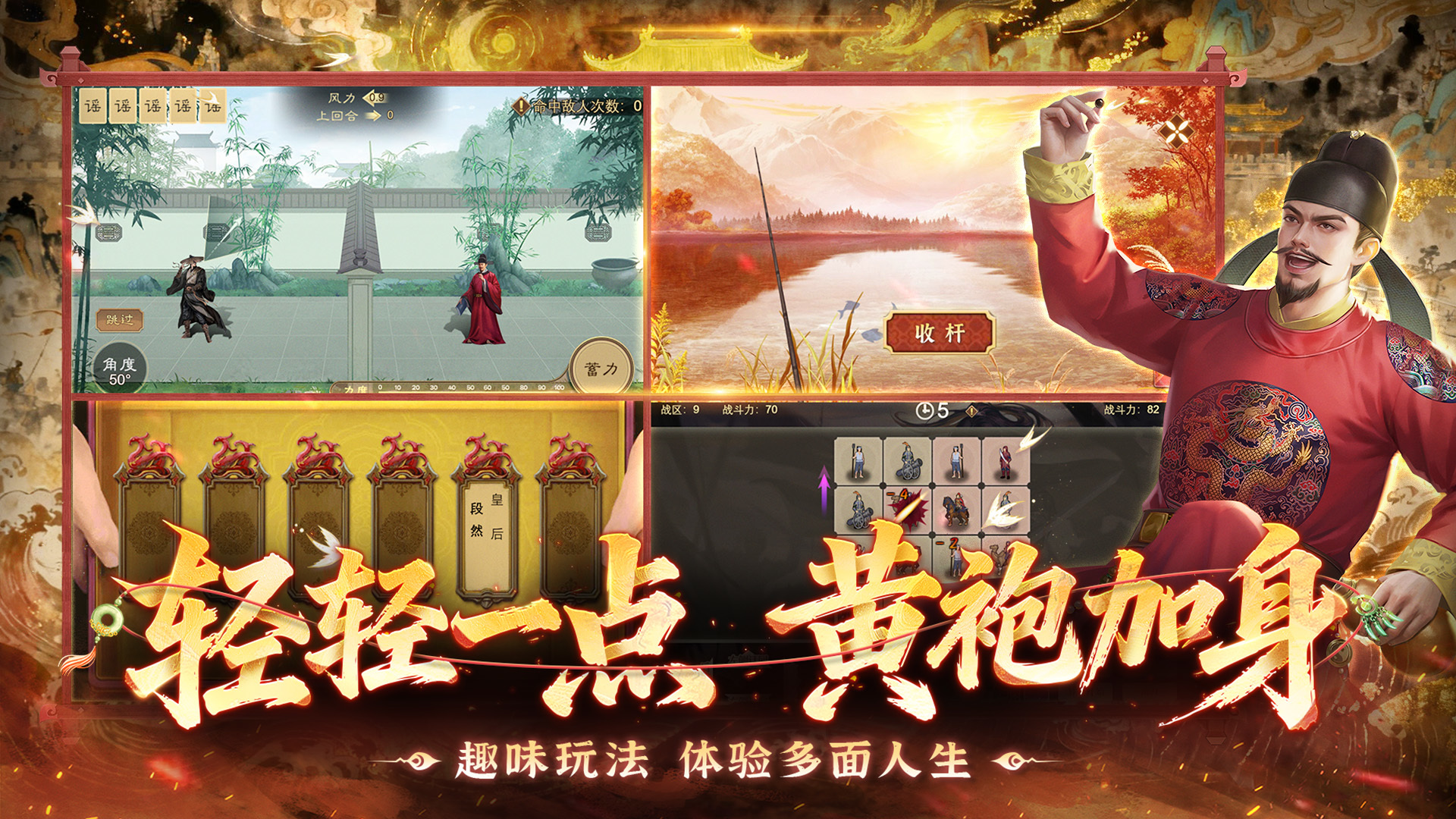 在游戏中,玩家可以扮演各个朝代不同的天子,治理自己的国家,收录名臣,秣马厉兵。西楚霸王、蜀汉名将、水浒英雄,谁能助你一统天下?是出师未捷身先死的诸葛孔明、还是铁面无私的包青天,谁才是你的名臣栋梁。从三皇五帝到唐宗宋祖,不同的皇帝剧本带你身临其境,体验不同的天子之旅。无尽的新奇玩法,挑战无限的激情国战,一切尽在《皇帝成长计划2》。