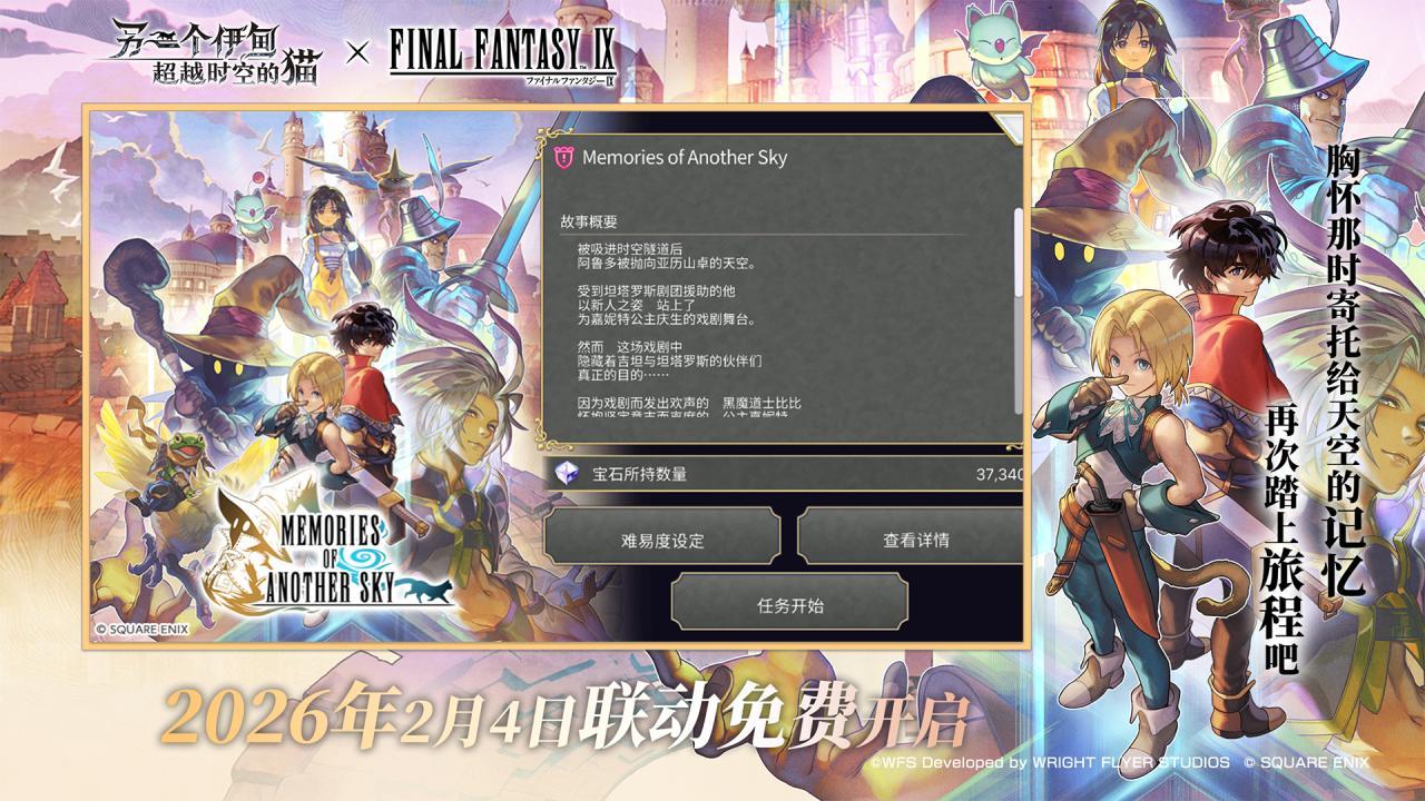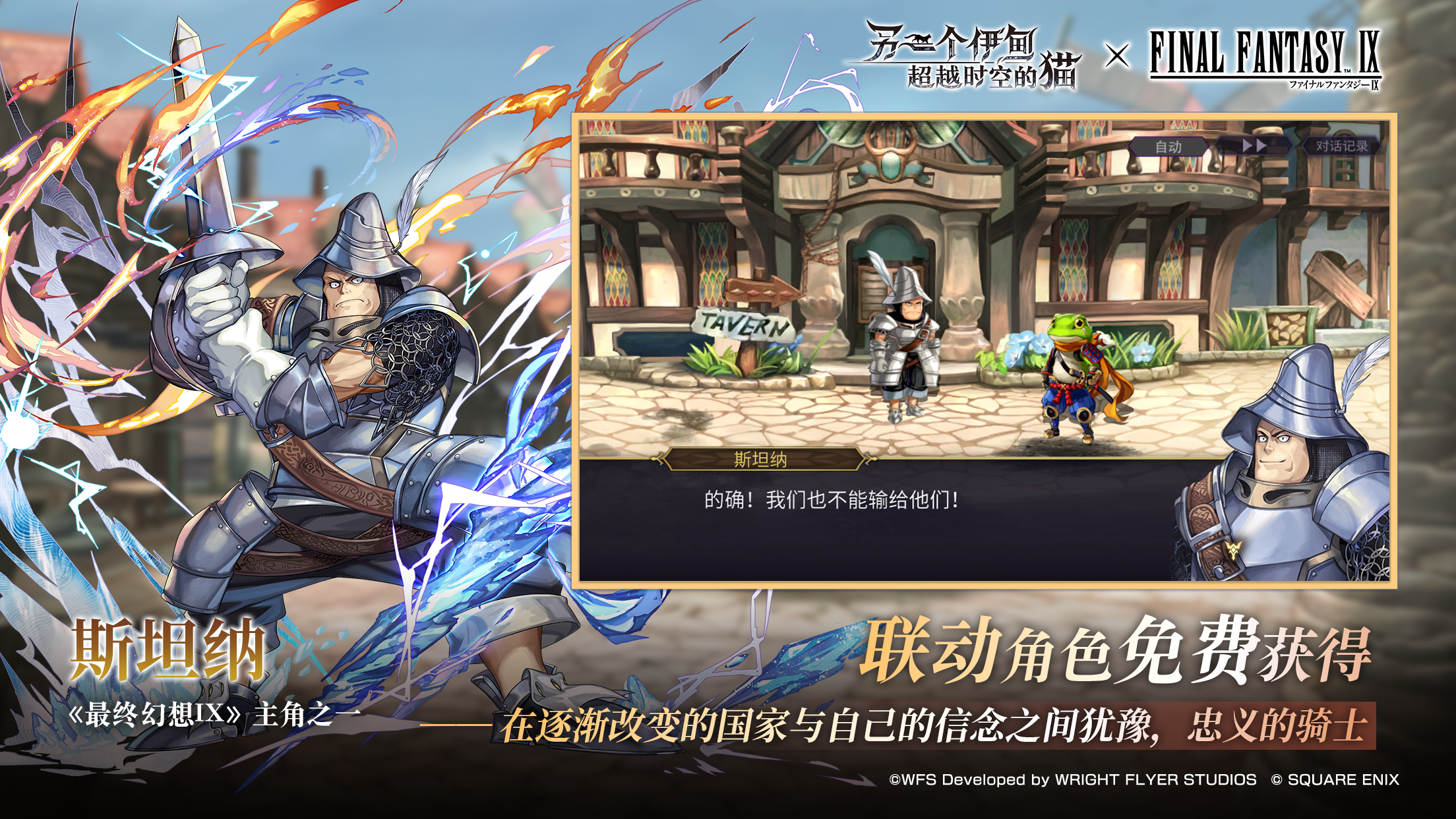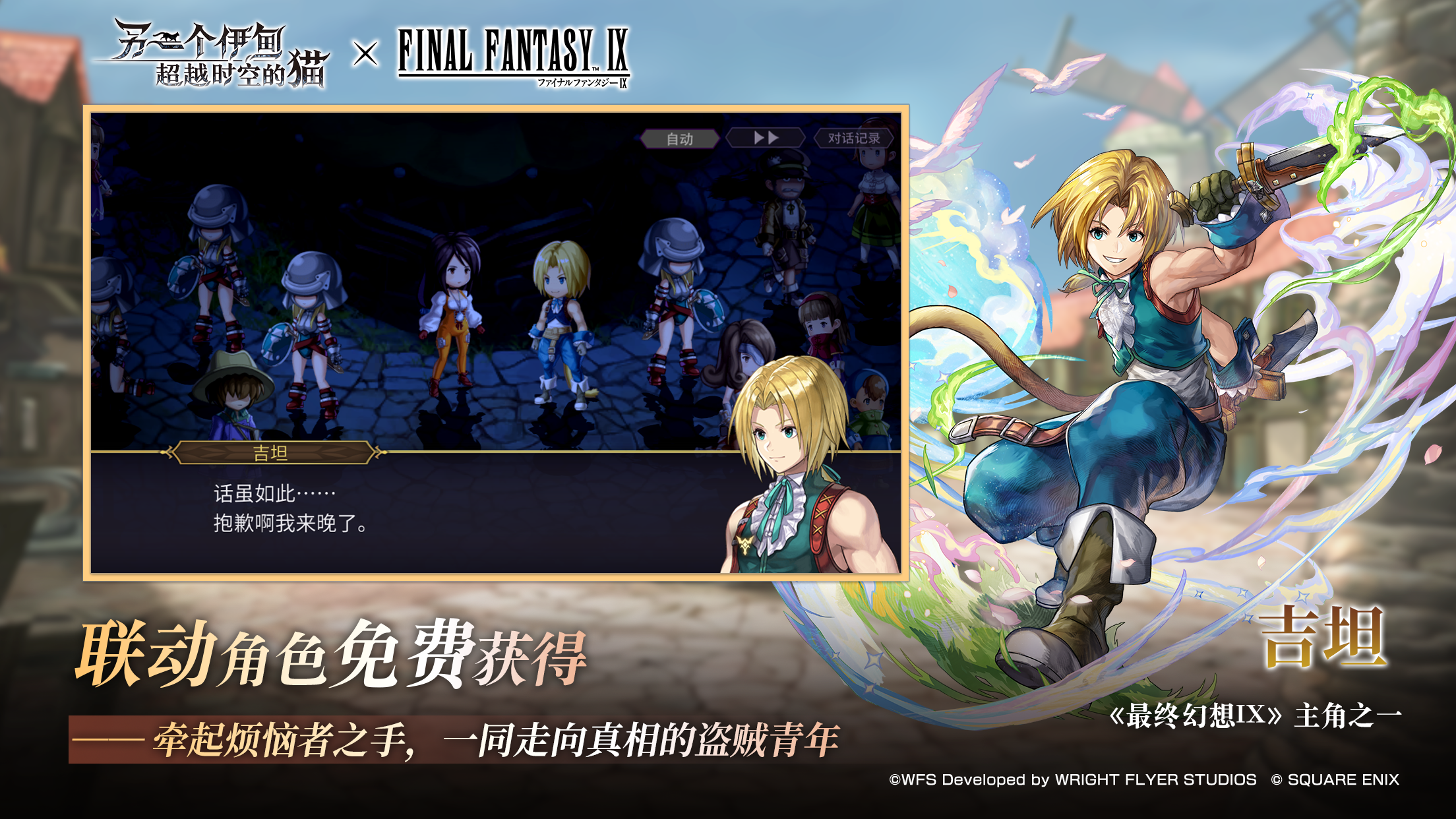 大量运用了管弦乐,可以感觉到中欧、西欧风情,营造出一种气势磅礴的氛围。而90首BGM则由土屋俊辅和Mariam Abounnasr两位精锐音乐人进行创作,乐曲融合了民族,交响乐,摇滚等诸多元素,在游戏中探索不同地图时不仅能感受自然地理风貌,还能聆听风格迥异的轻音乐。——结识个性鲜明的伙伴,探索不同时空的地貌、文化、野生动植物等通过《备长炭》和《海猫鸣泣之时》被众多玩家熟知的江草天仁,负责了本作的插画美术部分,仅是角色立绘多达100余幅,大部分角色根据其成长线绘制了相应的初始形态、5星形态以及AS形态、ES形态。并且游戏中的场景美术、NPC和BOSS等内容的原画,则是根据各不同时代的文化所创作,有着分明的区别性,非常的考究。——永久免费联动《女神异闻录5:皇家版》《另一个伊甸:超越时空的猫》与《女神异闻录5:皇家版》联动内容“双魂的羁绊与虚无的傀儡师”永久联动开启。《P5R》的人气角色Joker、摩尔加纳、VIOLET、SKULL都将作为免费的角色提供给玩家。而心之怪盗团其他成员Navi、Queen、Fox等将作为不可用角色参战。《另一个伊甸》X《P5R》联动中心之怪盗团阵容保留了高人气角色,游戏舞台也设定在异世界,让P5粉丝感到亲切,保证“一秒入戏”。——永久免费联动《传说系列》曾影响了一代人的“传说系列”游戏正式和《另一个伊甸:超越时空的猫》联动,传说系列中的4部作品主角克雷斯、尤利、米拉、薇尔贝特在《另一个伊甸》中登场。而且这次联动也不是单纯的角色强行插入,《另一个伊甸》专门为传说系列的4位主角制定了主线剧情章节,而且还是原汁原味的传说系列剧情。他们也带着自己的亲朋好友参与到这次联动里:《幻想传说》的敏特和亚雀(即阿洁)、《薄暮传说》的拉比特、《绯夜传说》的玛琪露......他们虽然不能作为可操作角色在战斗中登场,但在剧情里都有各自的高光表现。通关活动剧情后,这四名《传说》系列的角色就直接加入到了玩家的队伍当中,不需要通过抽卡获取。——免费联动《Chrono Cross》(超时空之轮2)