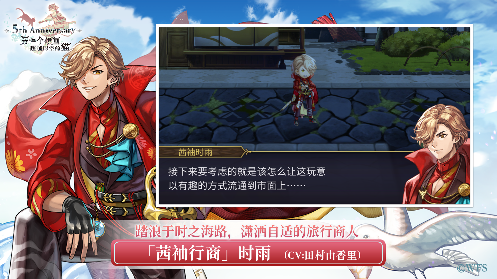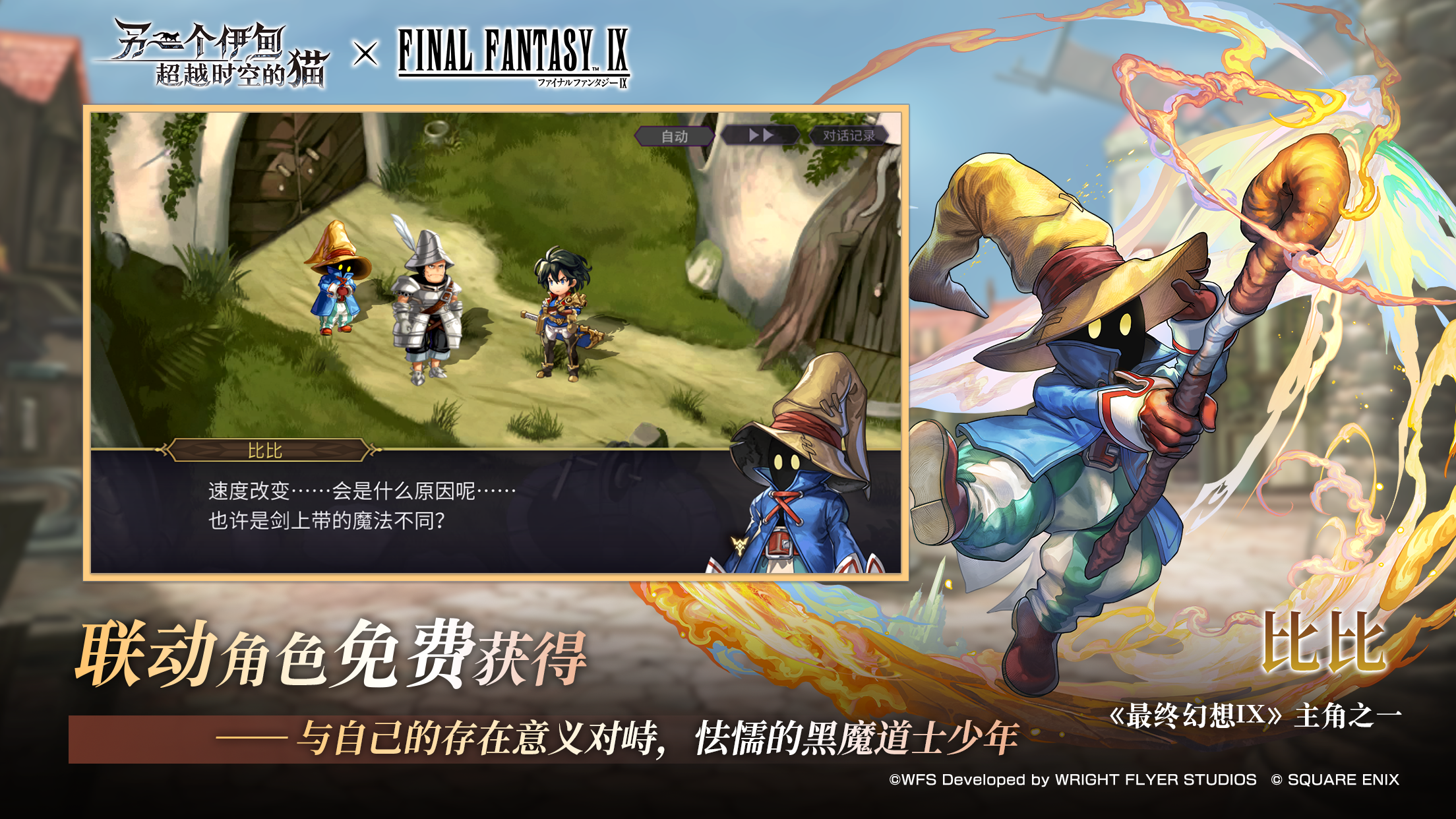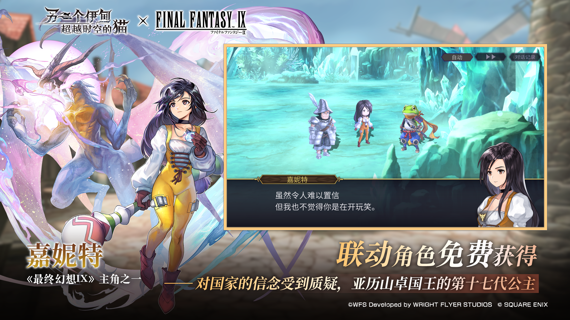 大量运用了管弦乐,可以感觉到中欧、西欧风情,营造出一种气势磅礴的氛围。而90首BGM则由土屋俊辅和Mariam Abounnasr两位精锐音乐人进行创作,乐曲融合了民族,交响乐,摇滚等诸多元素,在游戏中探索不同地图时不仅能感受自然地理风貌,还能聆听风格迥异的轻音乐。——结识个性鲜明的伙伴,探索不同时空的地貌、文化、野生动植物等通过《备长炭》和《海猫鸣泣之时》被众多玩家熟知的江草天仁,负责了本作的插画美术部分,仅是角色立绘多达100余幅,大部分角色根据其成长线绘制了相应的初始形态、5星形态以及AS形态、ES形态。并且游戏中的场景美术、NPC和BOSS等内容的原画,则是根据各不同时代的文化所创作,有着分明的区别性,非常的考究。——永久免费联动《女神异闻录5:皇家版》《另一个伊甸:超越时空的猫》与《女神异闻录5:皇家版》联动内容“双魂的羁绊与虚无的傀儡师”永久联动开启。《P5R》的人气角色Joker、摩尔加纳、VIOLET、SKULL都将作为免费的角色提供给玩家。而心之怪盗团其他成员Navi、Queen、Fox等将作为不可用角色参战。《另一个伊甸》X《P5R》联动中心之怪盗团阵容保留了高人气角色,游戏舞台也设定在异世界,让P5粉丝感到亲切,保证“一秒入戏”。——永久免费联动《传说系列》曾影响了一代人的“传说系列”游戏正式和《另一个伊甸:超越时空的猫》联动,传说系列中的4部作品主角克雷斯、尤利、米拉、薇尔贝特在《另一个伊甸》中登场。而且这次联动也不是单纯的角色强行插入,《另一个伊甸》专门为传说系列的4位主角制定了主线剧情章节,而且还是原汁原味的传说系列剧情。他们也带着自己的亲朋好友参与到这次联动里:《幻想传说》的敏特和亚雀(即阿洁)、《薄暮传说》的拉比特、《绯夜传说》的玛琪露......他们虽然不能作为可操作角色在战斗中登场,但在剧情里都有各自的高光表现。通关活动剧情后,这四名《传说》系列的角色就直接加入到了玩家的队伍当中,不需要通过抽卡获取。——免费联动《Chrono Cross》(超时空之轮2)