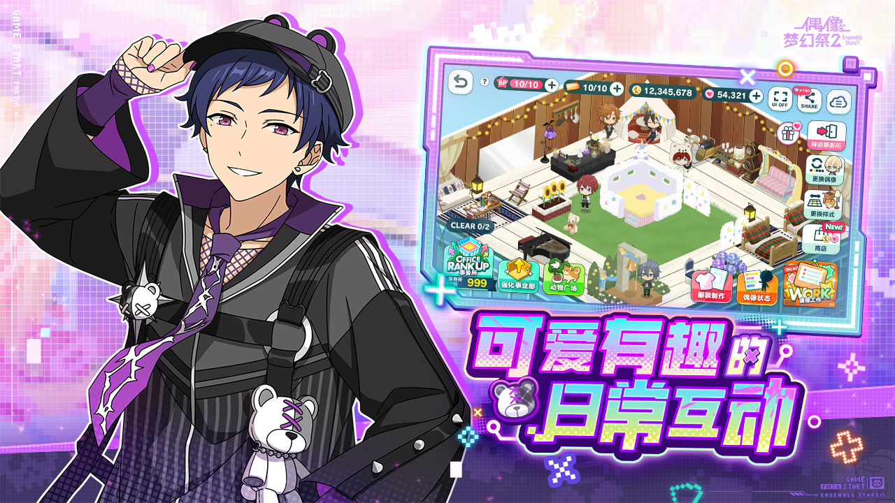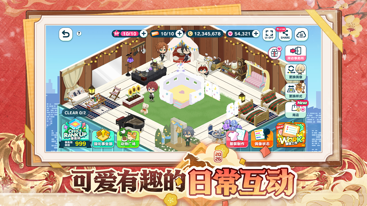 玩家可以在偶像事务所里布置各种各样的家具,创造专属的偶像家园,不仅有丰富的主题套装供玩家装饰,还能解锁超多超可爱的偶像特殊家具配套行为!海滩刨冰摊吃美味刨冰,温馨卧室带着毛茸茸眼罩打呼...精致的动作细节仿佛置身偶像生活之中,让人欲罢不能!