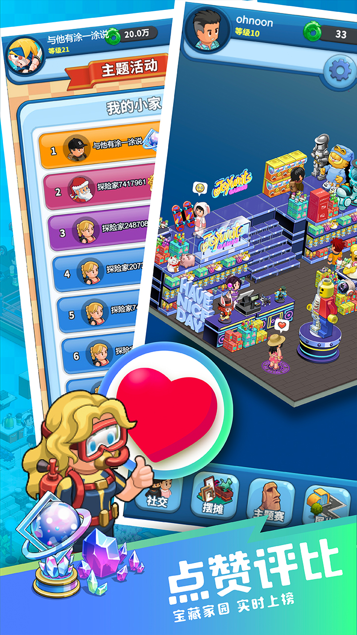在这里,你可以轻松搜罗到煌罗万象的奇葩物品,把他们随意堆砌成千变万化的场景,比如给你的至交好友“准备个惊喜”并邀请他一起在“侏罗纪探险”,再与其他的玩家一起比一比谁的“农场”够cool~~当然了,评比的决定权也在大家手中!你也可以邀请外星人一起开拓一个深海农场,交换一下各自珍惜的定情信物...大概,我们一帮狐朋狗友组织在一起,还能够共同创造一个有爱的小镇,maybe是个叫第三新东京市的地方?或者干脆咱们建立个火星基地,与隔壁白袍巫师精灵小姐姐们创造的中土世界来次联谊活动,...你问我这个酷毙了的“猛兽”从哪来的?这个潮玩可是限量版,最近价格翻了2倍,游戏里潮玩平台一上货我就抢到了,实体加虚拟玩偶同时获得,这款我觉着起码能翻十倍!每天千万别忘了去抢机会,你有好的可以跟我交换哈~