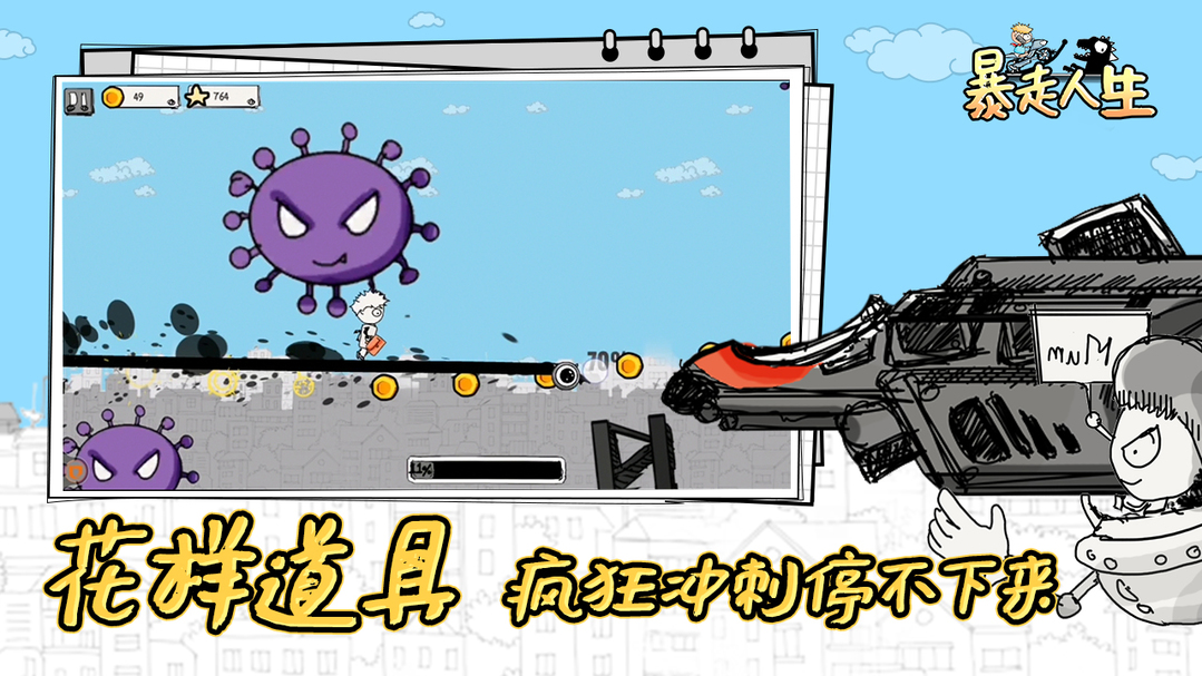 《暴走人生》是一款手绘恶搞风画线跑酷休闲游戏。休闲画线跑酷设定,将传统画线跑酷模式与人生成长设定结合,使玩法更具丰富性,较传统休闲画线游戏更具趣味性,独创的休闲、角色宠物培养,无论是上班途中还是夜前临睡,都可以让你轻松体验疯狂人生成长之旅。