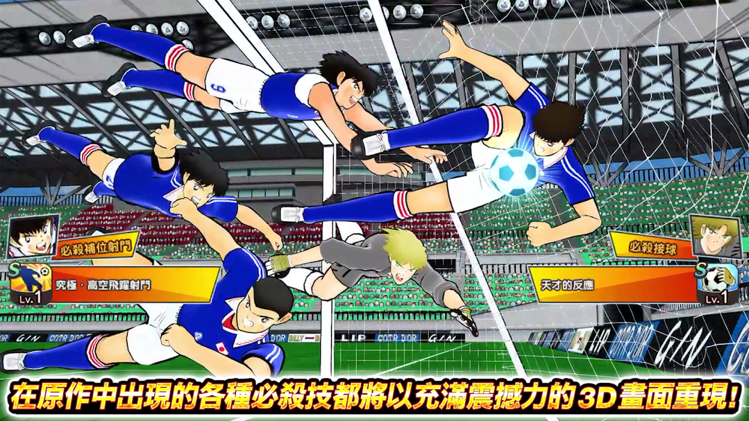 以翼的「抽球射门」和日向的「猛虎射门」为首,在原作中出现的各种必杀技都将以充满震撼力的3D画面重现!插入画面和角色语音带来的过场演出也不可错过!