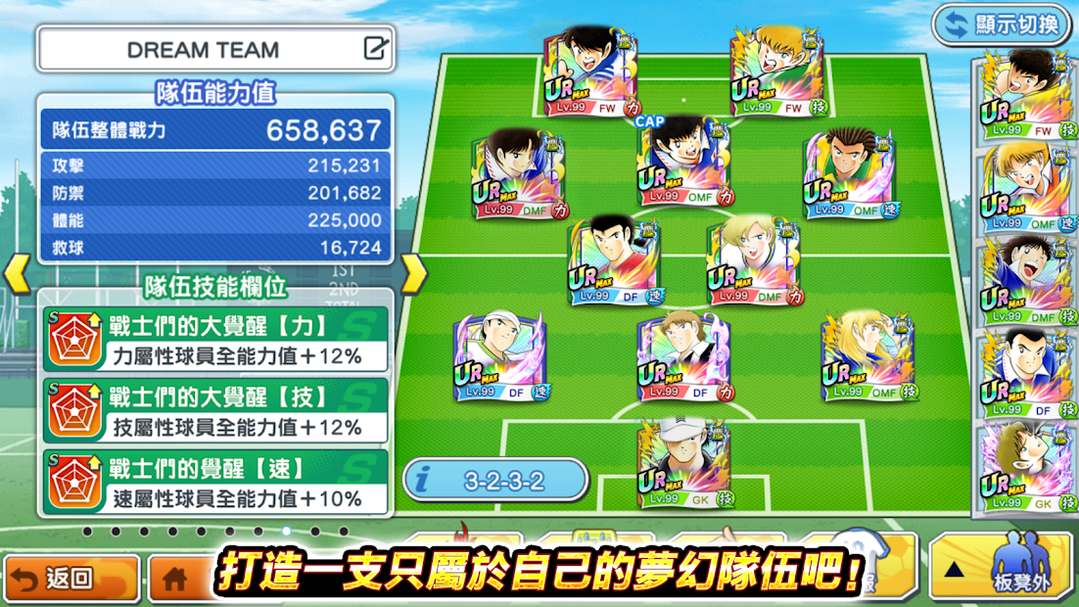 搭配喜欢的球员、阵型、队伍技能,强化你的球队!