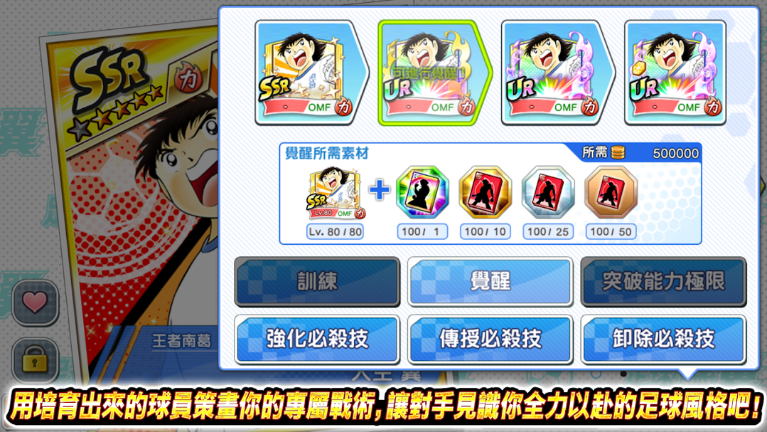 靠特训强化、培育球员!同球员之间还可以传授必杀技喔!