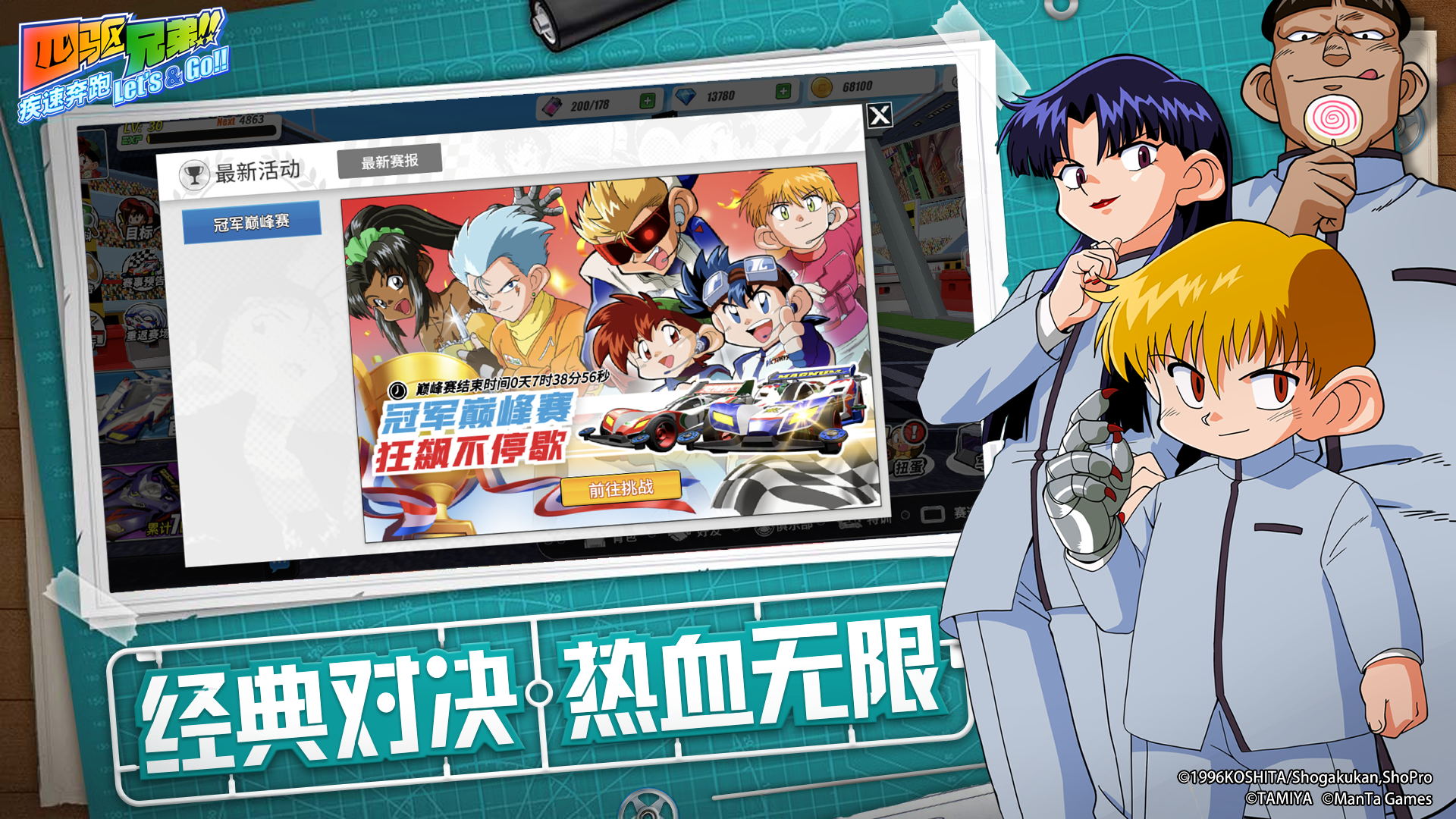忠实再现了动画中所有的经典车型,让你回味最熟悉的四驱兄弟。动动手指,把它们纳入麾下,一起踏上追寻冠军的征程!