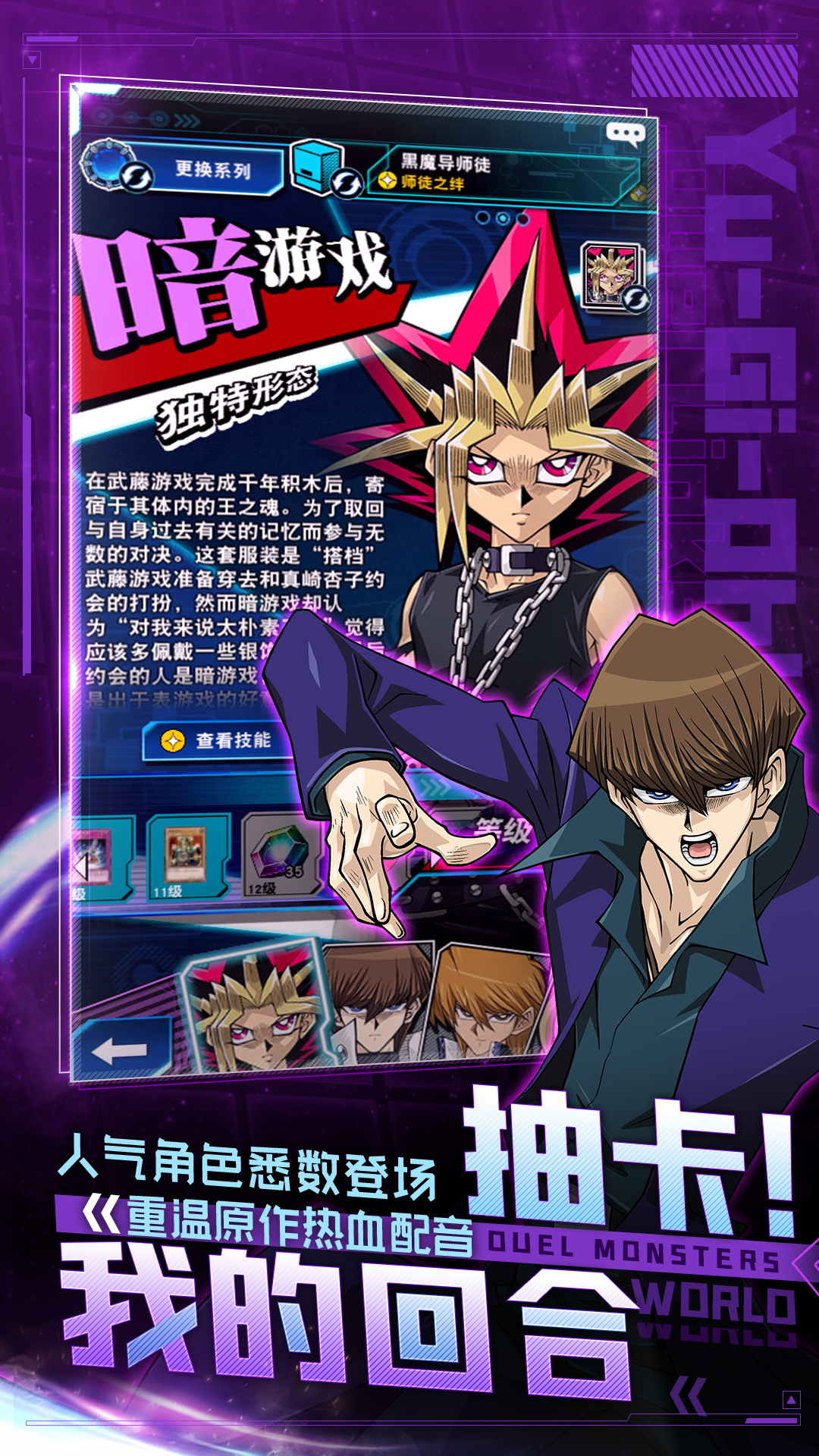 《游戏王:决斗链接》是由KONAMI研发,网易独家代理的官方正版手游。在决斗链接的世界里,化身暗游戏或海马濑人;利用多达上千张卡牌,随心构建独一无二的卡组;召唤黑魔导、青眼白龙等强力怪兽;更有震撼的3D召唤动画,完美重现记忆中的召唤场景!