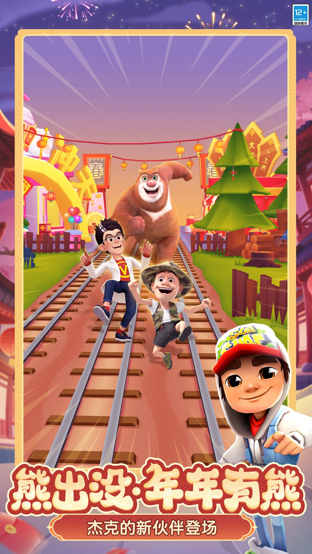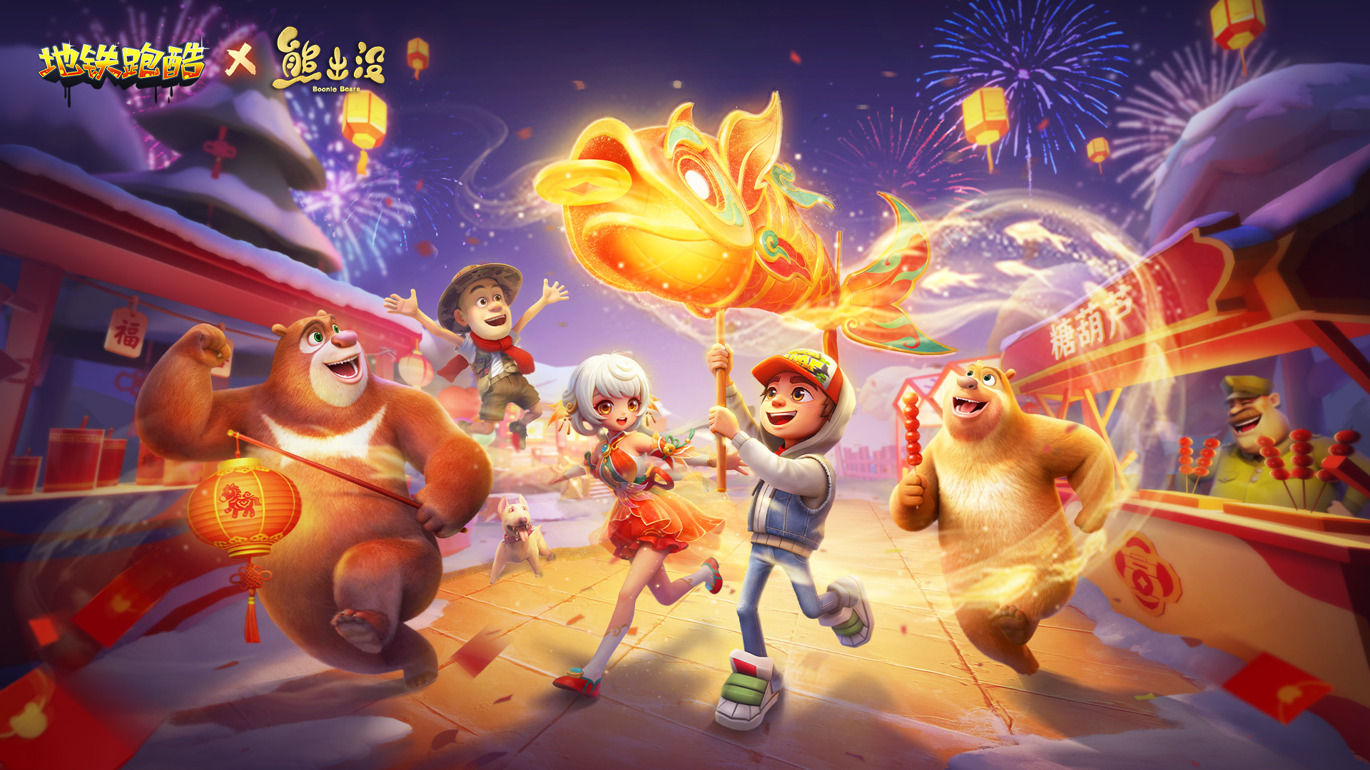 熊熊袭来,陪你一起过新年!熊出没经典角色光头强、熊大、熊二、吉吉国王、天才威加入春节庙会,更有神秘联动角色大年初一与电影同步现身地铁跑酷!联动角色使用喷气背包时,可以解锁限定蜂蜜罐喷气背包!联动挖宝活动“寻宝狗熊岭”火热开启,用锤子敲开隐藏宝物、点亮狗熊岭地图,熊出没联动限定角色天才威等你来拿!