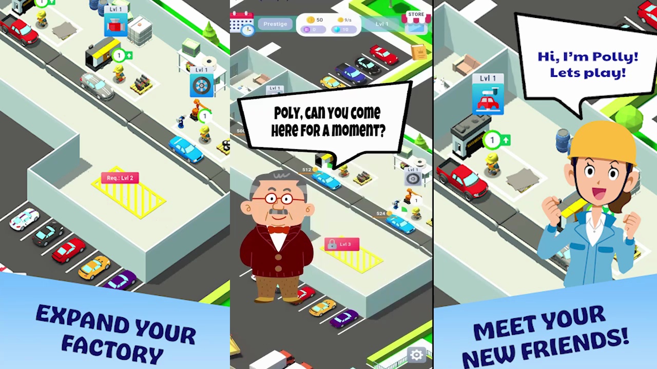 你好,我是Polly Loe,我刚刚接手我祖父的汽车厂!你会帮助我让它取得巨大的成功吗?哎哟!那是坠落的螺栓吗?哇,还好我戴着头盔!公司现在有点老生锈了,让我们一起让它变得现代吧!那么,你会帮我吗? :)
