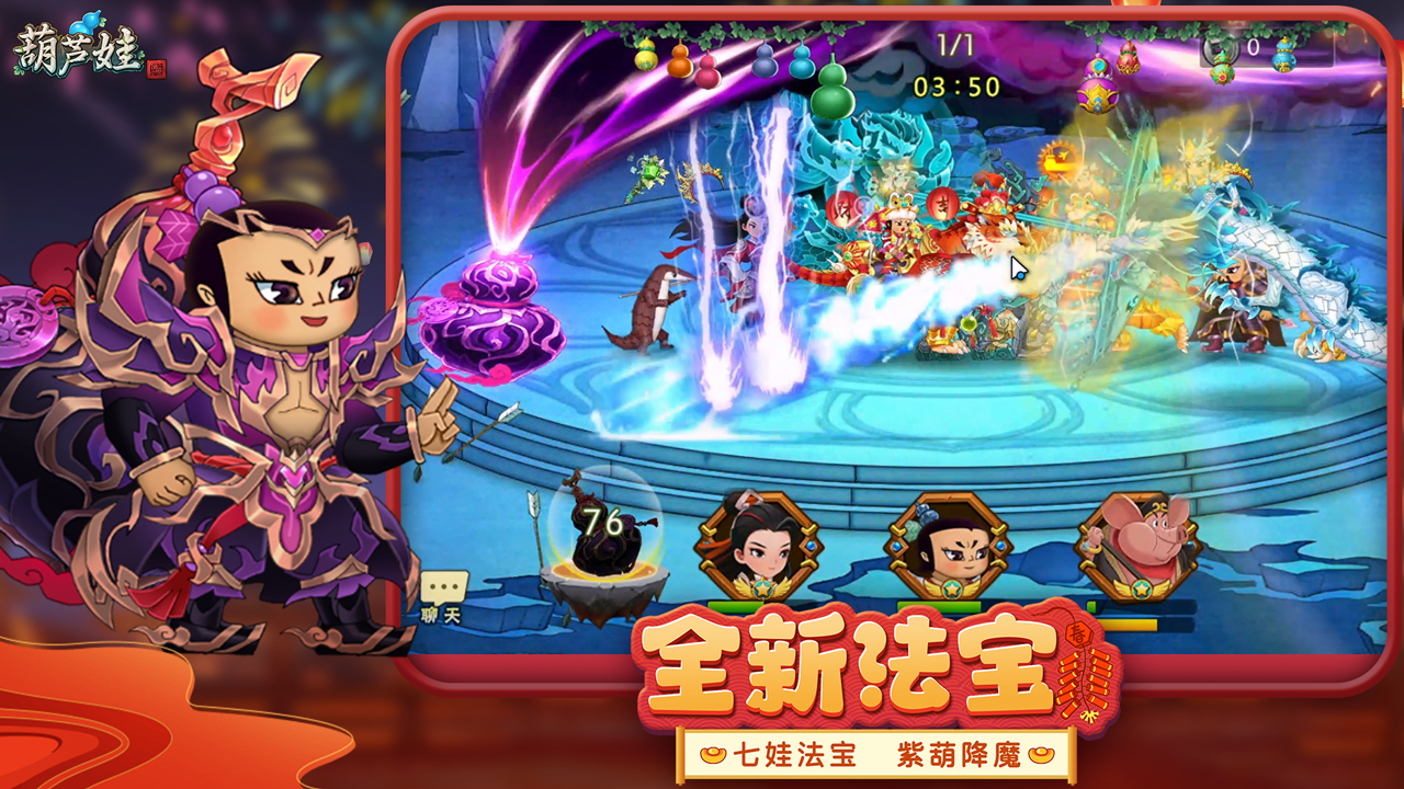 《葫芦娃》是由四九游与掌上纵横联合发行,傲世堂倾力研发的一款极具回忆风的同名动画正版授权手游。游戏完全遵循86年《葫芦兄弟》原作动画,采用标志性的“剪纸风”为游戏视觉画风,复原移植了原作动画的剧情、人物等,以DIY养成为基础,开创了“葫芦装备”与“葫芦农场”的创新玩法。蛇精、蝎子精、蛤蟆精再次出山作恶,你是否还有勇气与葫芦七兄弟、爷爷、小蝴蝶并肩作战,拯救葫芦山?穿越时光,重回童年,开启葫芦新传说!
