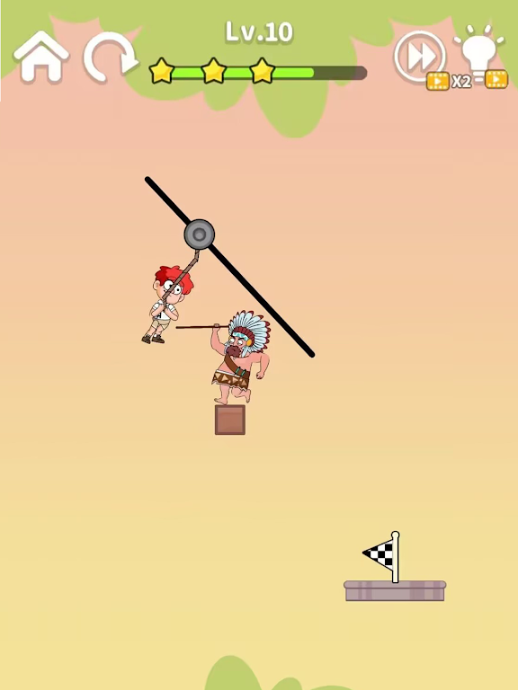 游戏的目标是成功将小囧带到安全点,途中会有重重危险和意想不到的陷阱等着他。 但如果您能从战略上思考并画出一条安全的高空滑索移动路线,小囧就会活着到达目的地。