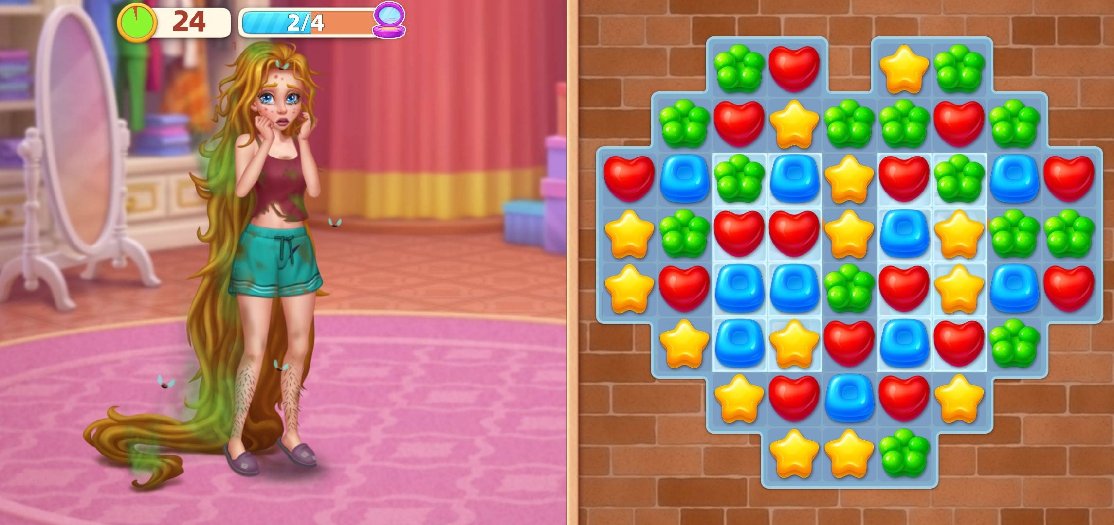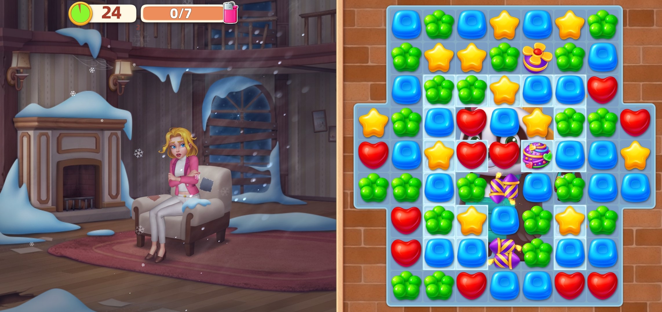 独特的游戏玩法和有趣的三消关卡,非常适合所有喜欢消除、装修、时尚改造的玩家!