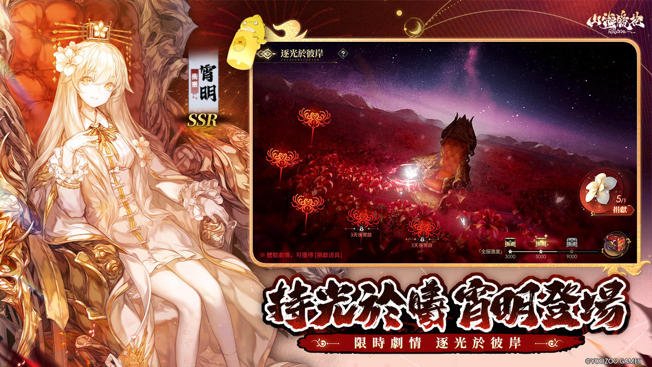 美术风格延续,原班美术团队倾力打造,更有阿杰、苏尚卿、山新等国内知名声优倾情演绎,协力创作神秘十足的大荒世界,展现每位镜灵的独特形象。新版本中角色立绘得到优化,还将迎来两位全新SSR镜灵——麒、夔牛。作为祥瑞化身的麒,独特的性格让人难以捉摸;而孤傲与威严并存的夔牛,却在不断追寻刺激与战斗。崭新篇章即将展开,这里的故事正等待龙子大人亲自探寻……