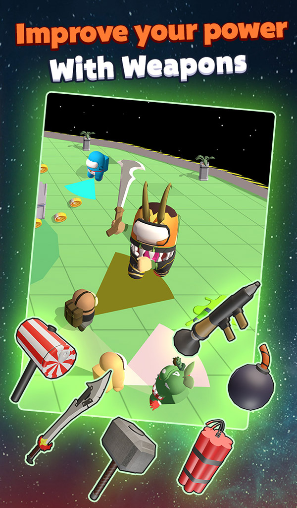 冒牌者的捣碎游戏是一款超酷、简单和放松的游戏。为了赢得这个,你的任务很简单:用巨大的锤子粉碎其他船员,消耗他们的力量变得更大更强,成为战场上唯一的冒名顶替者生存。但是,要小心,尽量避免撞到其他棘手的冒名顶替者,否则,您会被粉碎。