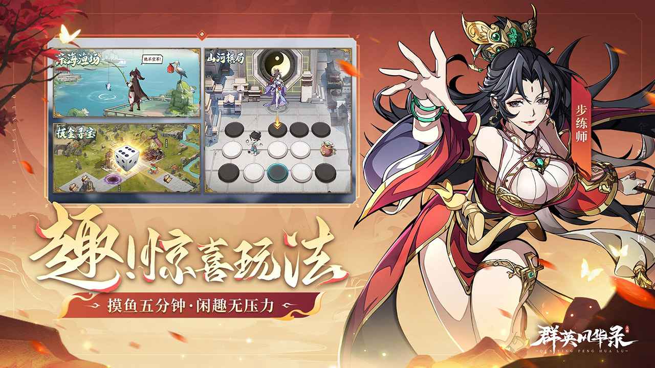 游戏设有“山河棋局、摸金校尉”等创新玩法,其中山河棋局让玩家充分代入对弈执棋之人,参与到策略的博弈之中,谋士以身入局,胜天半子便是全胜!而摸金校尉则能在不断轮转的地图中体验乐趣无穷的随机性和突然暴富的爽快感!还有更多玩法等待主公探索~