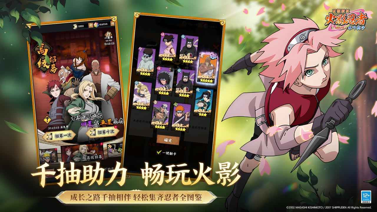 《火影忍者:木叶高手》是一款正版火影动画级剧情全新手游,将「火影忍者动画」的热血剧情、经典角色与炫酷忍术,以细腻的画面与流畅的表现,鲜活重现于掌间!原汁原味的剧情复刻、原班声优全新演绎、全忍者集结,带来前所未有的沉浸式体验。告别枯燥养成,畅享千抽福利,让你轻松组建豪华忍者阵容。今夏不容错过!