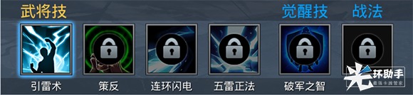 五雷正法:召唤五道雷电,从外向内旋转聚拢围困敌军将领,聚拢至中心后产生爆炸(伤害受智力影响)