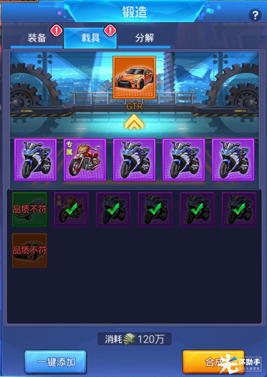 锻造是《乱斗之王》最常用的系统之一,它为玩家提供了装备载具的合成与分解功能。使用三件相同品质星级的装备,可合成高一级品质或星级的装备(注意不是同时提升哦)。同理,使用五件相同品质的载具,可合成高一级的载具。如果觉得装备太多背包放不下,也可以把它们分解成钞票哦!