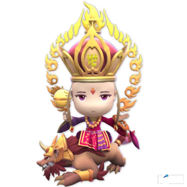 地藏王即地藏菩萨,因其“安忍不动,犹如大地,静虑深密,犹如秘藏”,所以得名。地藏菩萨则多为光头或是头戴毗卢冠,身披袈裟的出家僧人之相。一手持锡杖,一手持莲花,或是手持幡幢、宝珠等。
