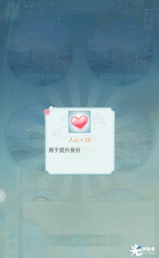 小主通过徒弟历练有概率获得人心(建议前期开5个徒弟位置和5个徒弟历练位置)。