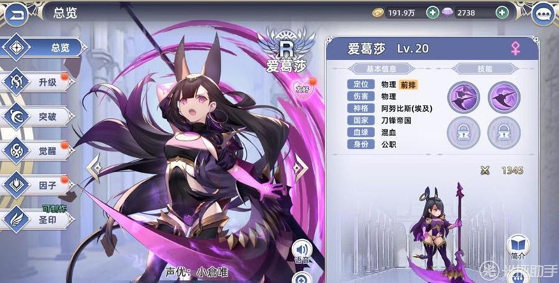 爱葛莎在阵容中充当着半坦角色,而她强大的吸血能力,让她的持航能力相当优秀。爱葛莎的银被动可以提升自己的攻击伤害,而她的金被动更是可以提升自身的血量。在七日任务中觉醒成为SSR级的英雄。