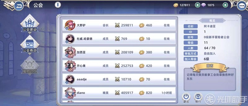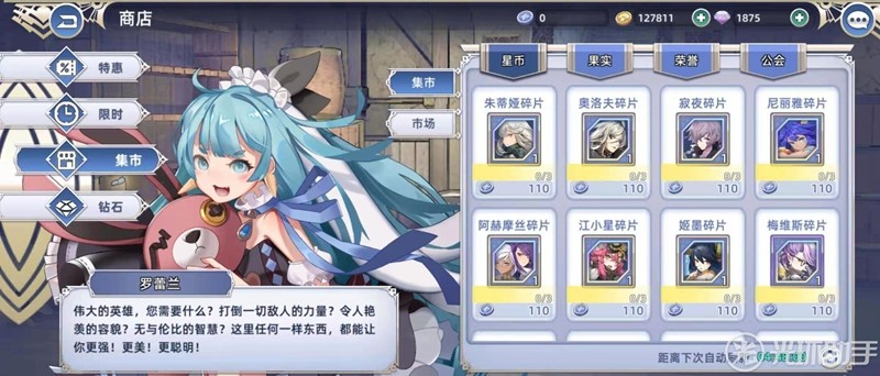 最后是公会商店,在公会里参加公会活动和进行公会捐献就能获得公会贡献,然后在公会商店里兑换想要的英雄碎片就可以了。