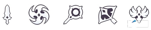 除了属性,英雄还有职业的不同。游戏中的职业分为战士、刺客、法师、弓箭、贤者五种,分别对应的图标如下: