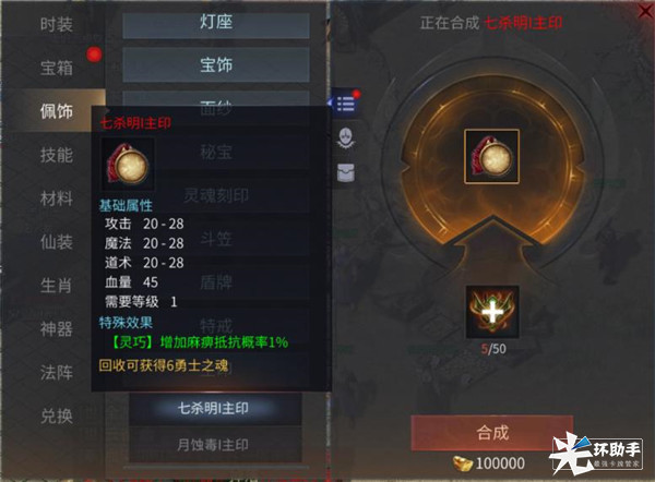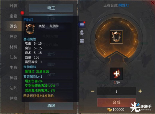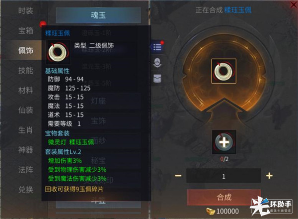 魂玉和灯座是套装配饰,魂玉提升玩家攻击及防御、灯座提升玩家攻击及血量。两者组成套装属性,增加玩家伤害并减少玩家受到的物理及魔法伤害。