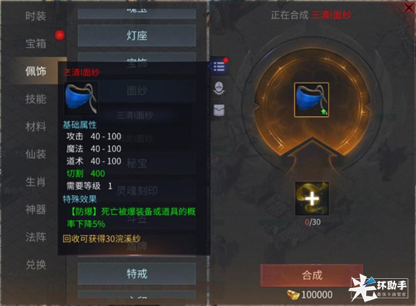 面纱能够大幅提高我们的攻击及切割伤害,同时附带特殊技能【防爆】死亡被爆装备和道具概率下降。这绝对是大家超喜欢的防御类技能。毕竟沙城无双中装备都是不绑定的,死亡是有可能将自己辛辛苦苦打造起来的装备爆掉,而面纱则将这概率降低,极大地保护了我们,让大家在PK时更加没有后顾之忧。