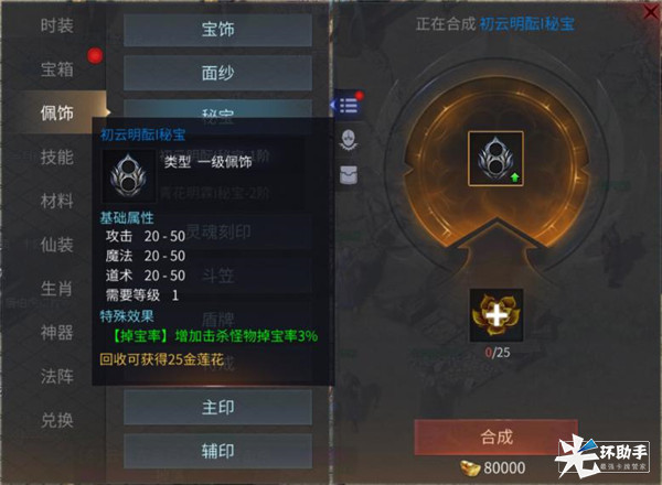 秘宝主要提升人物攻击属性,同时附带特殊效果【掉宝率】增加击杀怪物掉宝率。