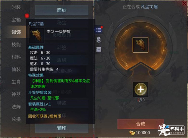 大家可以在右侧锻造-合成-配饰中找到所有的配饰类型,同时所有的配饰都会在我们人物角色页面显示。