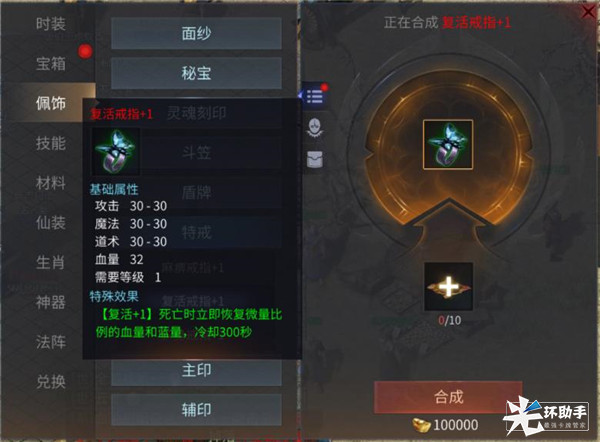 复活戒指附带效果【复活】死亡时立即恢复部分血量及蓝量,有冷却时间。
