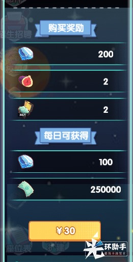 购买三十元礼包主要是为了VIP经验,VIP经验只能通过购买钻石礼包获得。一个三十元礼包的经验可以直接让你的VIP等级也就是校董等级直升到3级。校董等级3级后你会发现你的游戏体验上升了不止一个台阶(战斗跳过、各种一键领取、课堂顿悟等),强烈推荐。