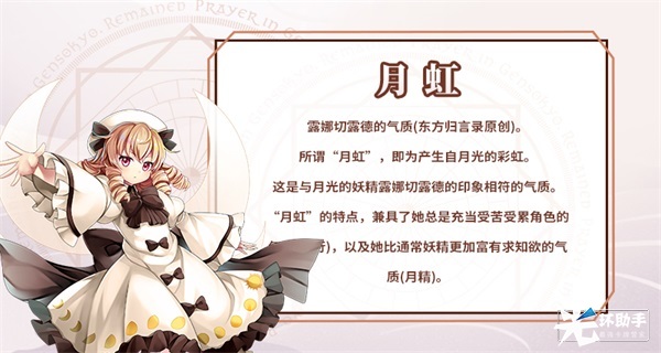 “月虹”的特点,兼具了她总是充当受苦受累角色的气质(水行),以及她比通常妖精更加富有求知欲的气质(月精)。