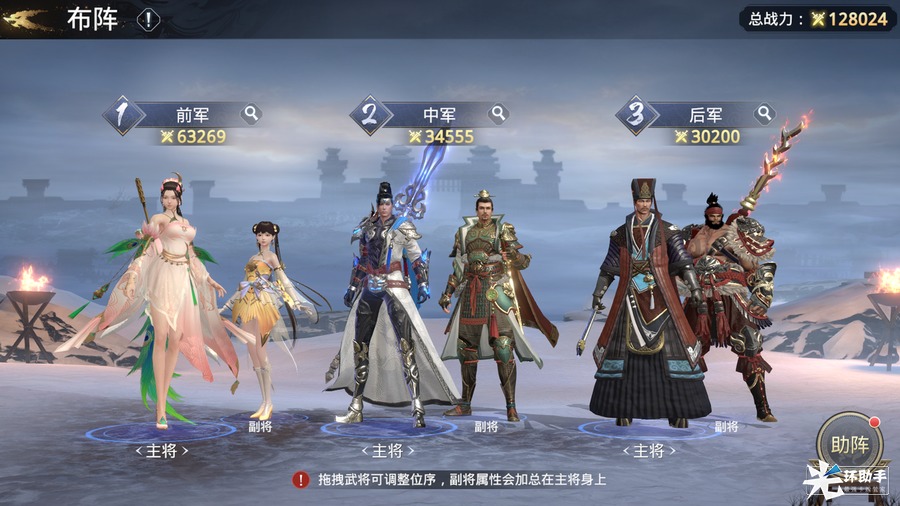 在《极无双2》中,是可以上阵三组武将的。每组武将由主将+副将构成。