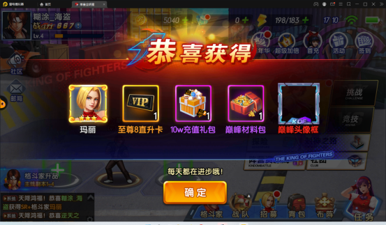 1.创角进入游戏后,最快升级方式,购买10元首充礼包,获取SR+露可娜娜。加快副本通关