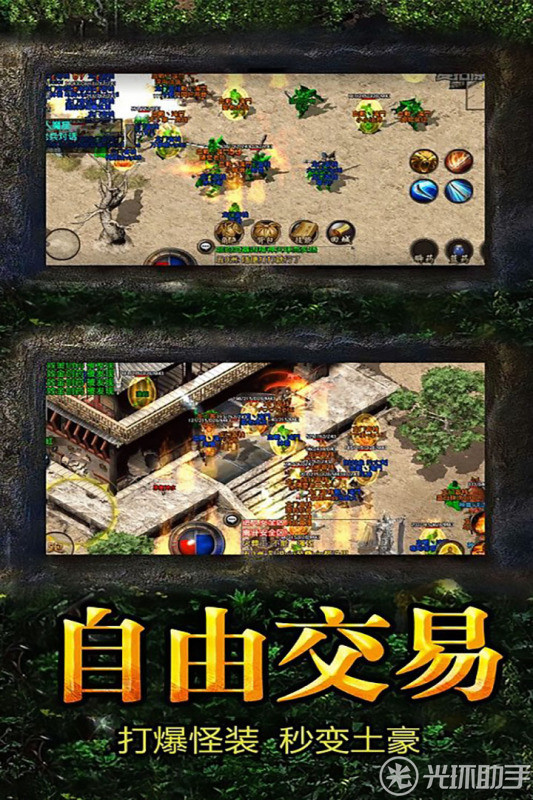 高清的游戏画面,丰富的游戏剧情将传奇故事背景与游戏做了完美的结合,携手昔日兄弟,制霸皇城、激战BOSS,绚丽的技能,酣畅淋漓的战斗,超高爆率及超保值的装备,一定会给您带来一个不氪不肝的绝佳体验。