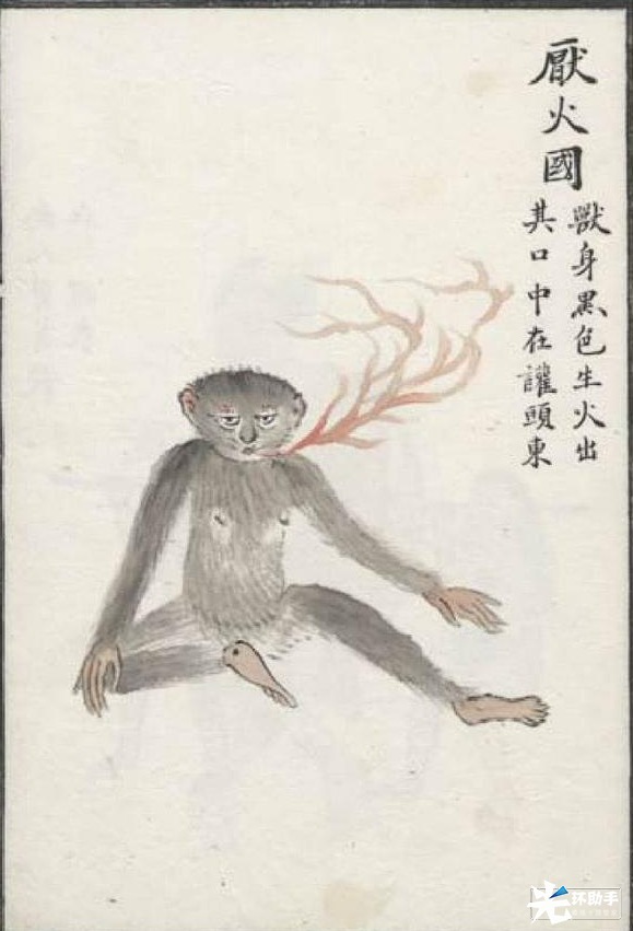 《山海经 · 海外南经》:“厌火国在其(讙头)国南,兽身黑色,火出其口中。一曰在欢朱东。”