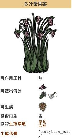 饥荒多汁浆果从怎么种?有什么用?多汁浆果丛是多人版饥荒中独有的一种植物。它们是浆果丛的另一个种类。在游戏世界中随机生成的浆果丛不是多汁浆果丛就是普通的浆果丛。属于布景一部份的浆果丛不会被替换,永远都会是普通的浆果丛。